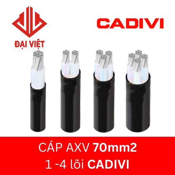 Cáp AXV CADIVI 70mm2 0,6/1KV 1 đến 4 lõi hay dây cáp điện AXV 70mm2 CADIVI, cáp AXV-70 CADIVI 0,6/1KV,… là loại cáp điện lực, tiết diện 70mm2, ruột nhôm, cách điện XLPE, vỏ PVC.