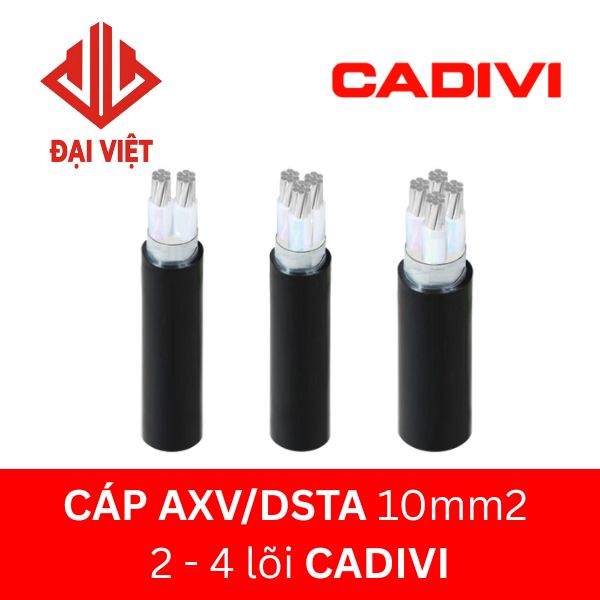 Cáp AXV/DSTA 10mm2 CADIVI ngầm hạ thế 0,6/1KV 2 – 4 lõi hay dây cáp điện AXV/DSTA 10mm2 CADIVI 0,6/1KV, cáp AXV/DSTA-10 CADIVI,… là loại cáp điện lực, tiết diện 10mm2, loại 2 lõi 3 lõi 4 lõi, ruột nhôm, cách điện XLPE, giáp băng kim loại, vỏ PVC.