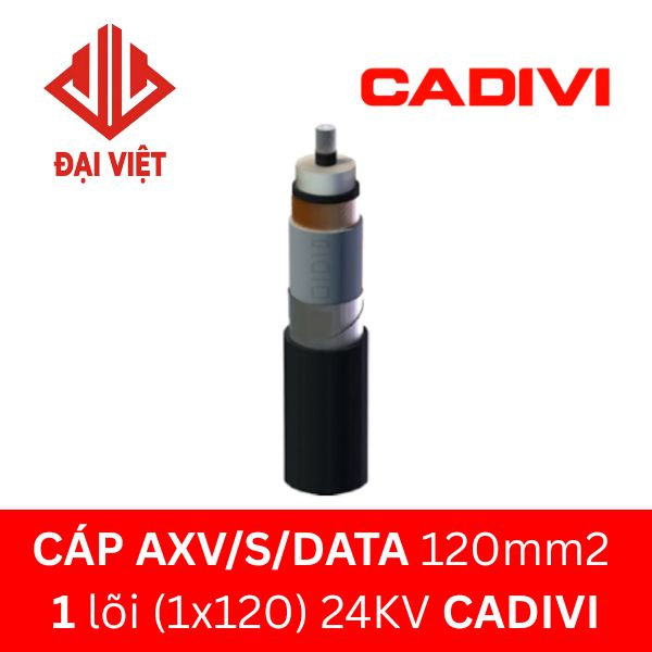 Cáp AXV/S/DATA 120mm2 CADIVI 24KV là loại cáp AXV/S/DATA 120mm2 trung thế 24KV của thương hiệu CADIVI có tiết diện 120mm2, có 1 lõi thuộc dòng cáp AXV/S/DATA CADIVI 24KV.