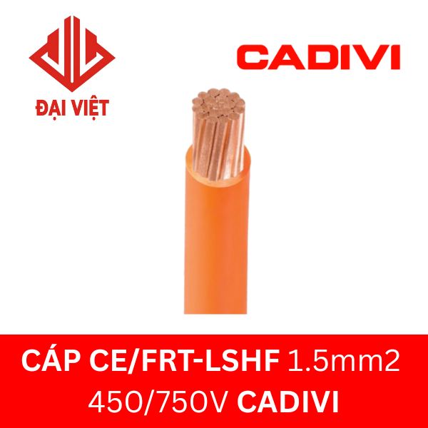 Dòng cáp CE/FRT-LSHF 1.5mm2 CADIVI thuộc cáp chậm cháy không vỏ bọc, ít khói, không halogen – cách điện XL-LSHF, điện áp 450/750V – theo tiêu chuẩn BS EN 50525-3-41.