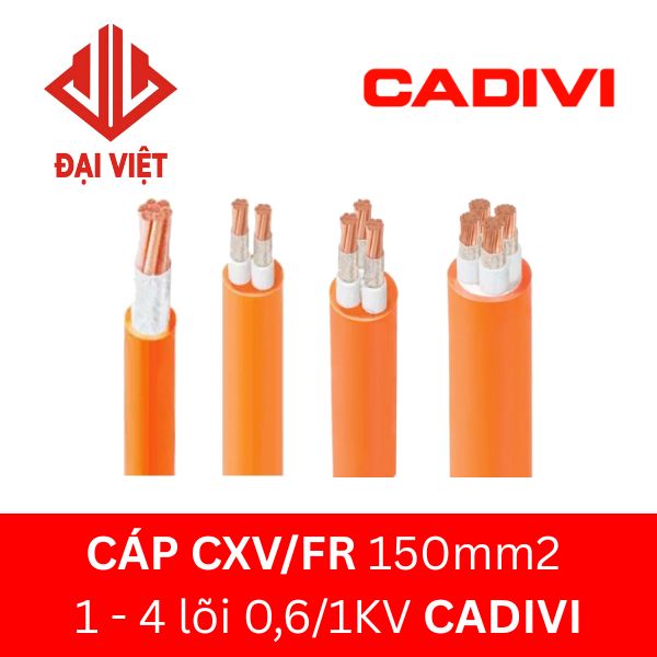 Dòng cáp CXV/FR 150mm2 CADIVI 0,6/1KV thuộc cáp điện lực hạ thế chống cháy – theo tiêu chuẩn TCVN 5935-1/IEC 60502-1, IEC 60332-3 CAT C, BS 6387 CAT C; cấu tạo từ 1 đến 4 lõi, ruột dẫn đồng, có băng Mica, cách điện XLPE và vỏ bọc FR-PVC.