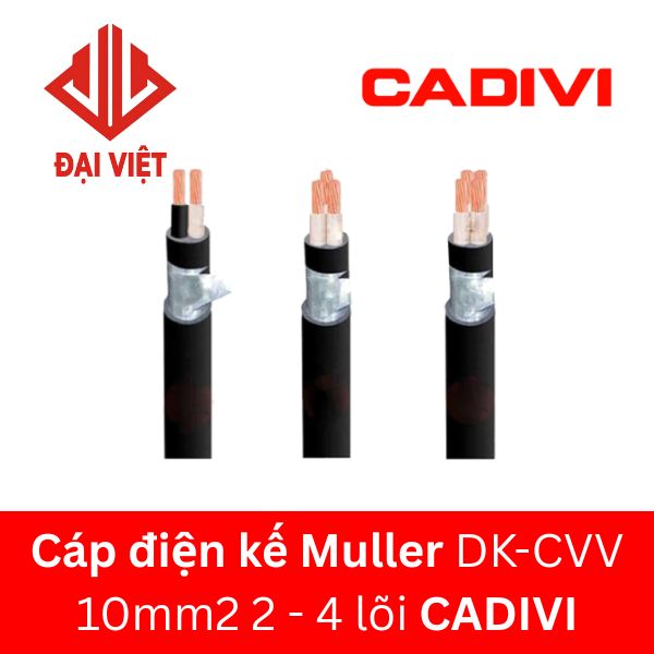 Cáp điện kế Muller DK-CVV 10 CADIVI 0,6/1KV hay dây cáp DK CVV 10mm2 CADIVI 0,6/1KV, cáp DK-CVV-10 CADIVI,… là loại cáp điện kế, tiết diện 10mm2, 2 đến 4 lõi, ruột đồng, cách điện PVC, vỏ PVC, cấp điện áp 0,6/1KV.