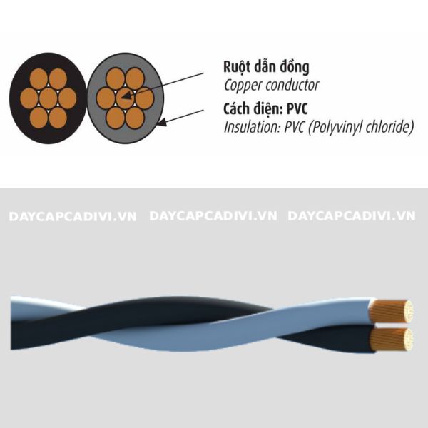 - Dòng: Cáp dulex CADIVI 0,6/1KV ruột đồng cách điện PVC