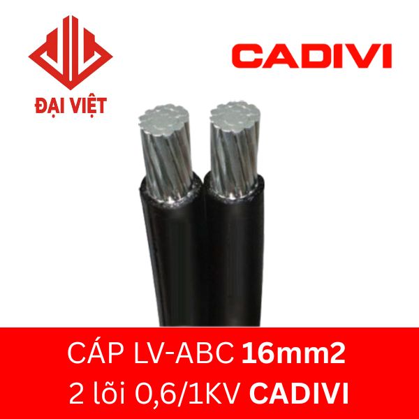 Cáp LV-ABC 16 mm2 2 lõi CADIVI 0,6/1KV thuộc dòng cáp nhôm vặn xoắn CADIVI, được sản xuất từ nhà máy CADIVI đáp ứng các tiêu chuẩn Việt Nam TCVN 6447, tiêu chuẩn quốc tế AS 3560.1 và thường được dùng cho hệ thống truyền tải và phân phối điện treo trên không, cấp điện áp 0,6/1 kV.