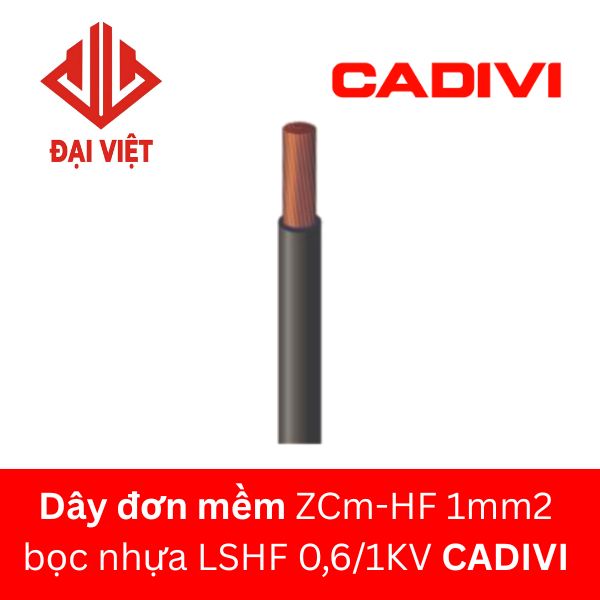 Dây đơn mềm ZCm-HF 1mm2 CADIVI bọc nhựa LSHF hay dây cáp điện ZCm-HF 1mm2 CADIVI, dây ZCm-HF 1 CADIVI… là dây điện đơn mềm LSHF, ruột đồng, tiết diện 1mm2, không có vỏ, có đặc tính chậm cháy ít khói không halogen, dùng cho các thiết bị điện dân dụng.